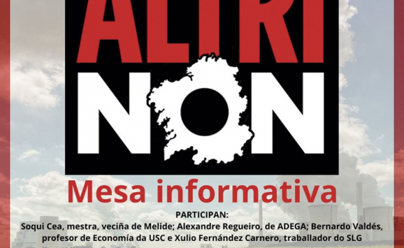 O vindeiro xoves día 23, en colaboración coa Agrupación Cultural Alexandre Bóveda e o Circo de Artesáns, organizamos unha mesa informativa sobre o intento da multinacional ALTRI de instalar no corazón de Galiza, nas comarcas da Ulloa e Terra de Melide, unha macrocelulosa cun brutal impacto negativo tanto ambiental como […]