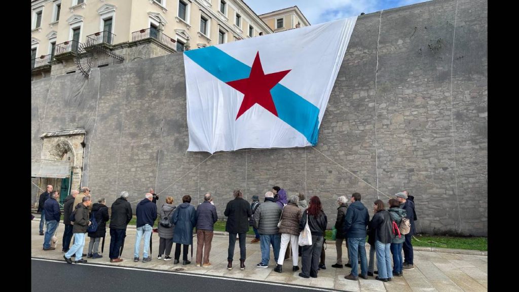 • Despregamento da bandeira desde o Xardín de San Carlos