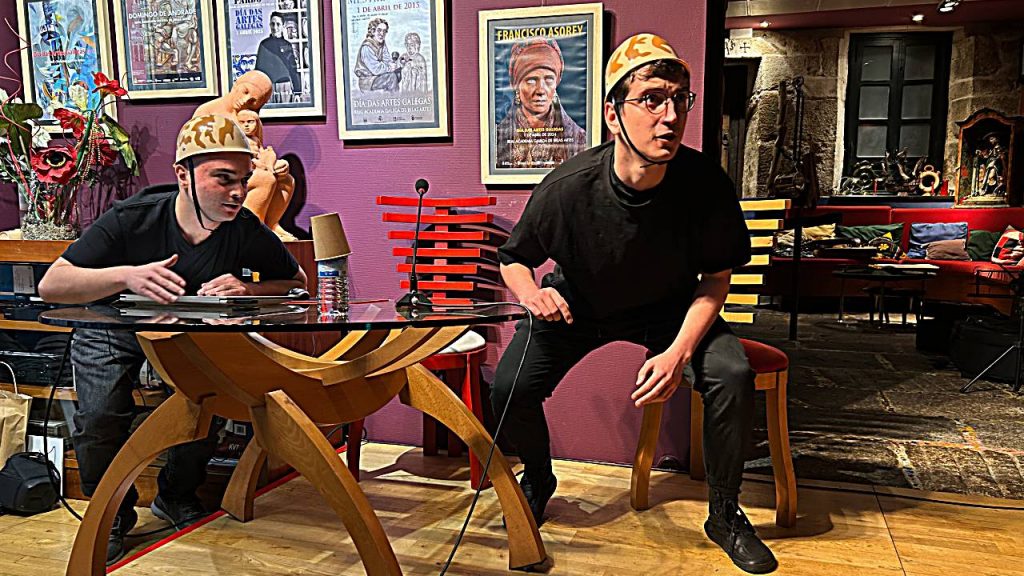 Chegou logo o momento puramente teatral: dous actores do proxecto Casahamlet Teatro representaron unha peza breve da autoría do propio Manolo, un símbolo de continuidade e transmisión, o pasado feito presente sobre o escenario, coa sinxeleza poderosa de quen sabe que a palabra dita na escena é a forma máis pura da permanencia.